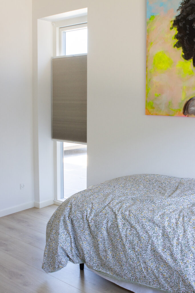 Med up and down-plisségardiner kan lys og privatliv tilpasses efter både rummet og tidspunktet på dagen. Gardinet kan justeres både nedefra og oppefra, så det skærmer for indkig nedefra, mens dagslyset stadig kan strømme ind oppefra. En ideel løsning til nybyggeri, hvor haven stadig er åben, og I ønsker både lys, udsyn og afskærmning på samme tid.
