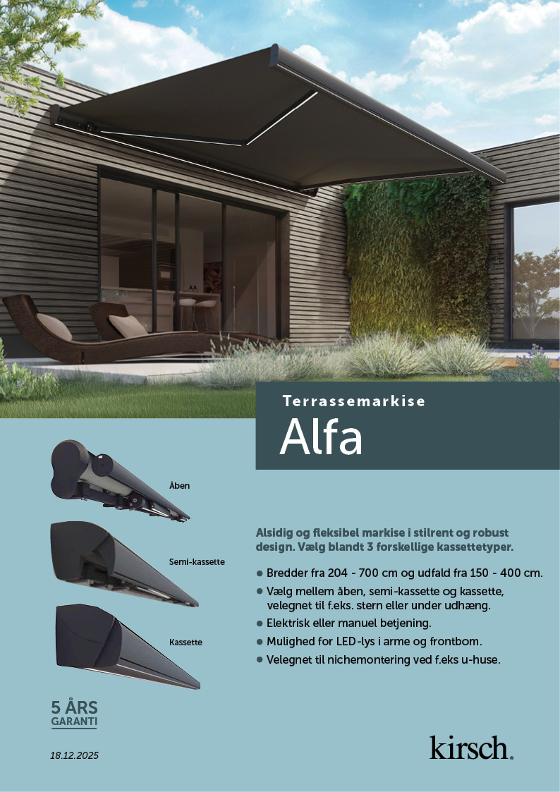 Herunder finder du produktblade til download, vejledning til vedligeholdelse af din nye markise og garantibeviser til download.